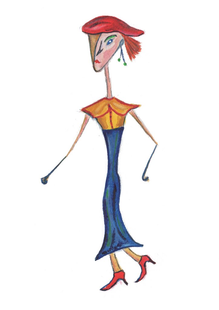 Overall, Angela is chic, elegant, very Parisian, very ‘French’ with typical Gallic passion. The beret is not just a hat, it is a statement, a flag of revolution. Her red hair, too, suggests intensity, the heat of fire.
